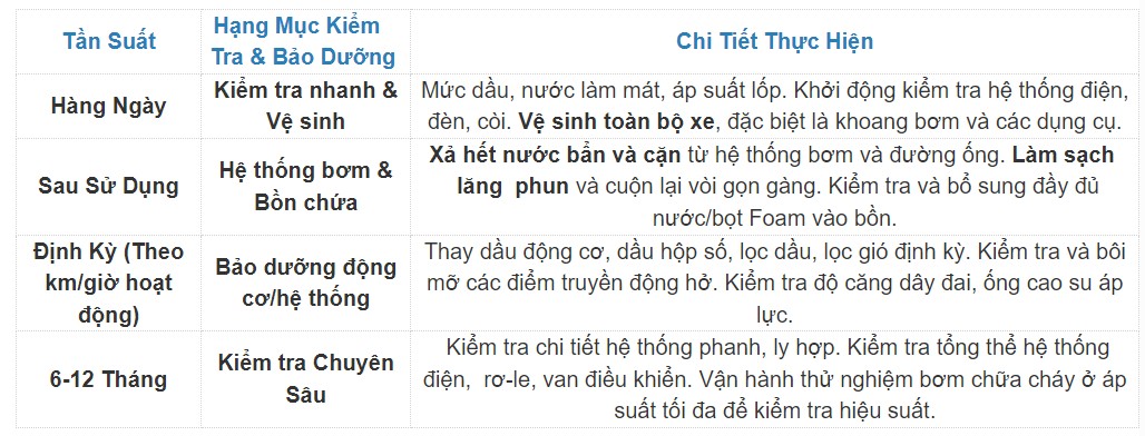 Đây là quy trình vận hành và bảo quản cốt lõi giúp xe cứu hỏa Dongfeng 6 khối đạt hiệu suất tốt nhất: